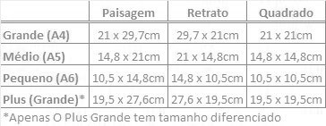 - P (10,5 x 7,4 cm)e M (13,8 x 9,5 cm)